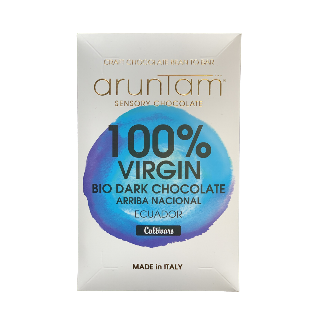 Italská tabulka z Milána pro milovníky 100% čokolád. Čokoládovna Aruntam pro vás vyrobila tabulku z Ekvádorského kakaa z odrůdy Nacional Arriba. Čokoláda má jemné sladké květinové tóny v začátku chuti, které ze překlopí do tropického ovoce s tóny ořechů a balsamika, dochuť čokolády je příjemně kořeněná.