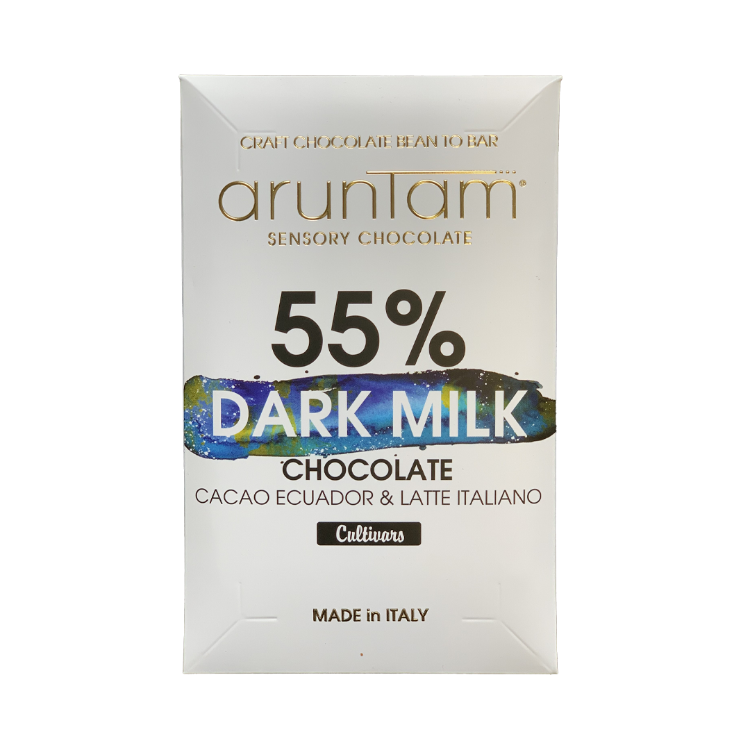Od milánské čokoládovny Aruntam je i tato skvělá Dark milk čokoláda 55%. Tabulka je vyrobena z ekvádorského kakaa a italského mléka. V krabičce na vás čeká čokoláda s krémovou konzistencí s tóny květin, ovoce a pražených ořechů.