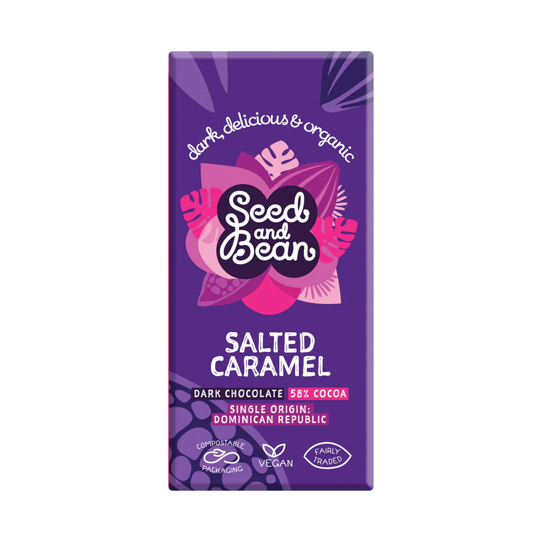 Skvělá čokoláda od britských Seed and Bean se slaným karamelem! Pokud milujete tuto příchuť, budete mít radost o to větší. Čokoláda je vyrobena z kakaa z Dominikánské republiky a chutná jako karamelové bonbony. Užijte si ji.