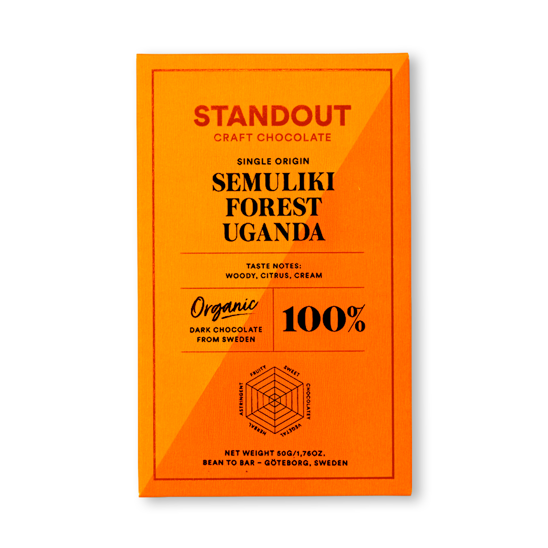 Další skvělá stovka od Standout ze Švédska. jemná tmavá čokolád bez zrnka cukru a plná chutě ugandských kakaových bobů. Těšte se na příjemný dřevitý tón v začátku chuti čokolády s velmi příjemnou citrusovou kyselinkou a dochutí po smetaně.