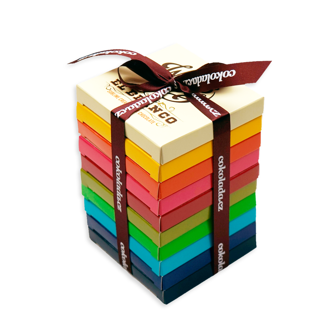 Ochutnejte mix deseti výborných britských čokolád Willie's. Budete překvapeni jedinečnou chutí bílých a mléčných čokoláda, ale také hořkých čokolád se zajímavými přísadami. Dárkové balení mašlí je již zahrnuto v ceně sady čokolád.